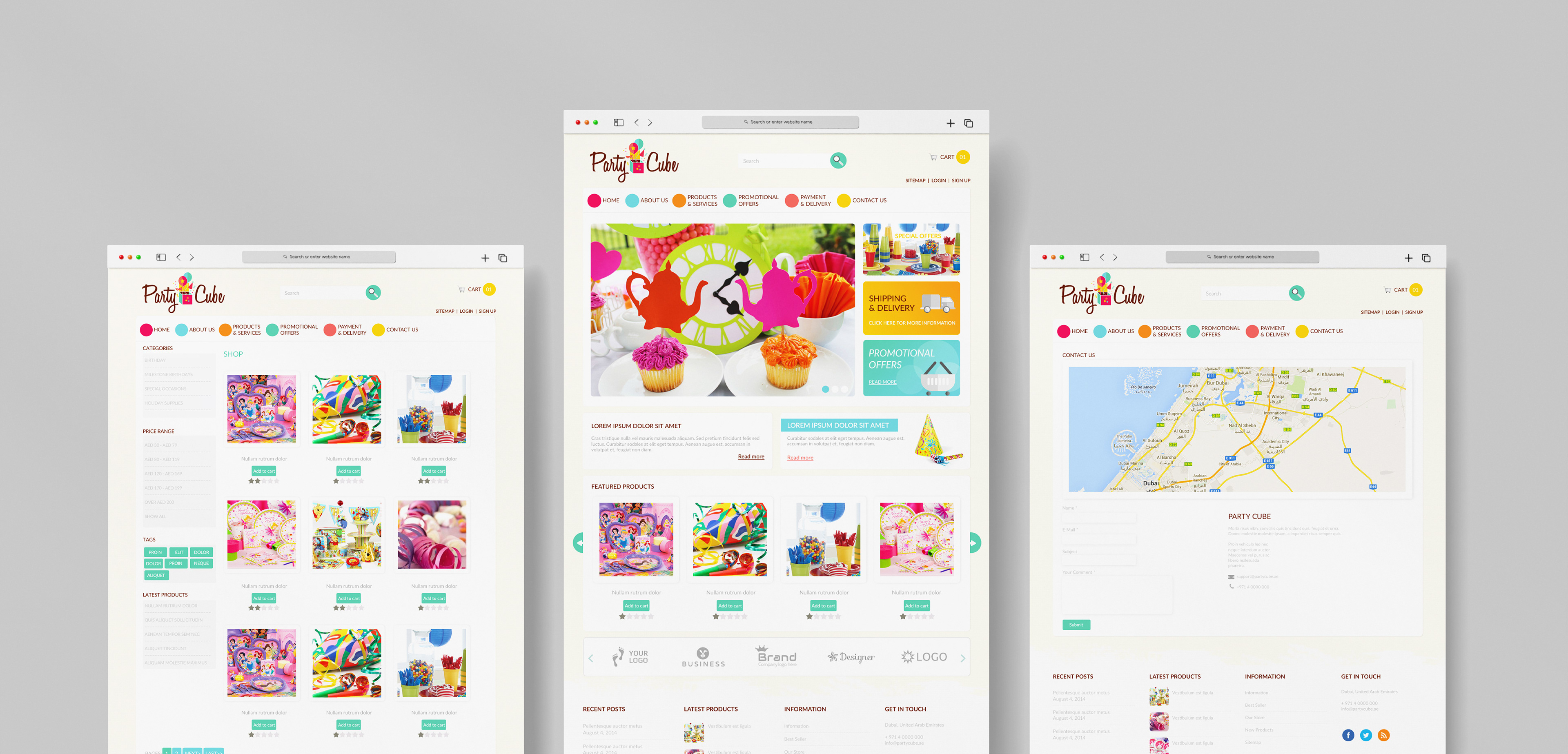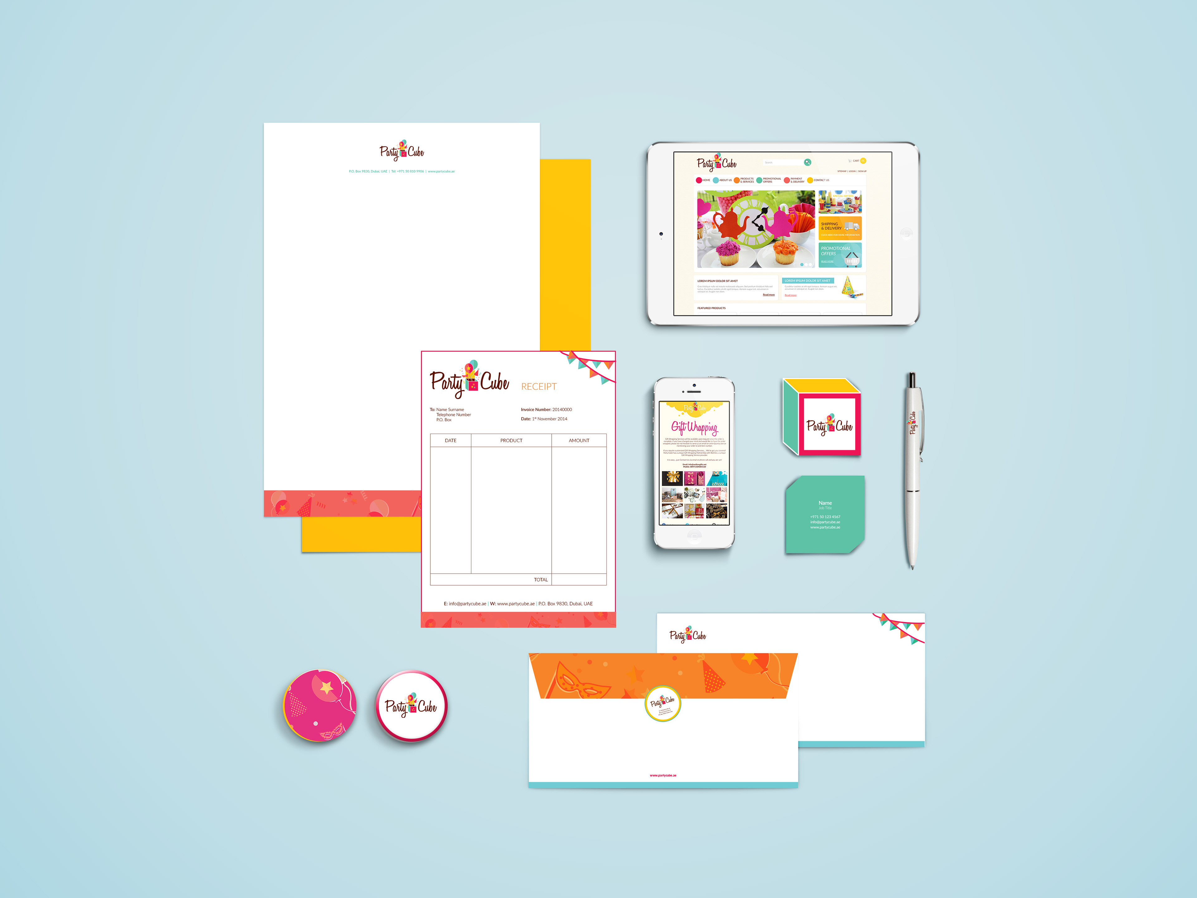 Party Cube is an online party supplier based out of the UAE. The bilingual logo created showcases a jack-in-the-box with party elements in a bright, engaging colour palette.